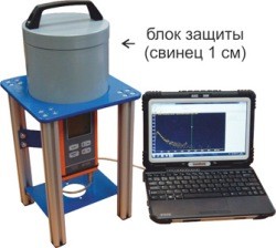 Диапазон измерения удельной активности 137Cs с использованием сосуда Маринелли 0,5 л. 50-105 Бк/кг (с блоком защиты)