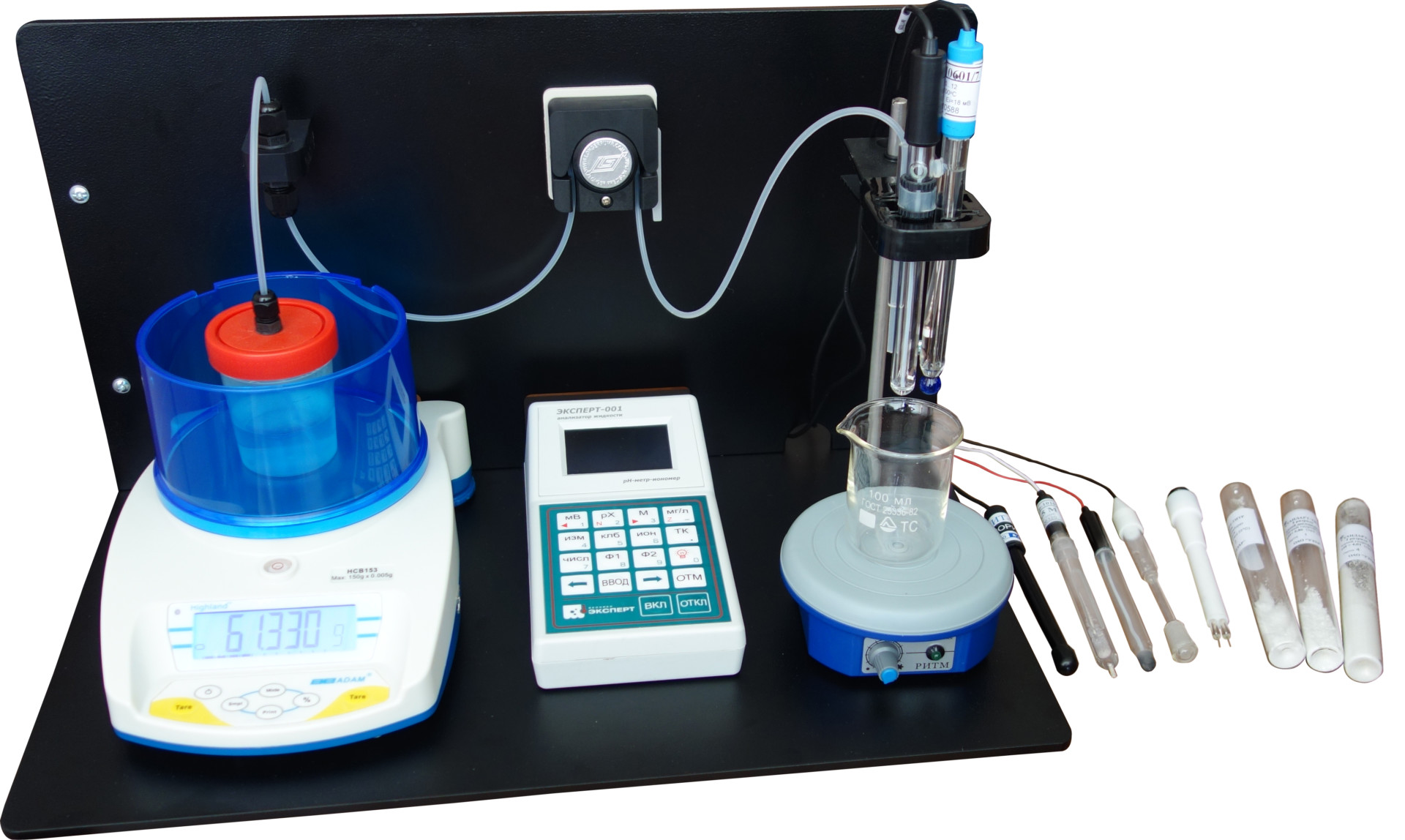 Комплект включает оборудование для автоматического титрования двумя методами: потенциометрическим (измерение ЭДС электродной системы анализатором «Эксперт-001») и амперометрическим (измерение силы тока в цепи электродной системы при наложении напряжения анализатором «Эксперт-001»). Представляет собой комплект «Титрион-1/1» (или «Титрион-1/1А»), укомплектованный электродными системами.