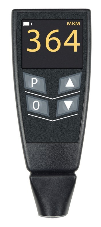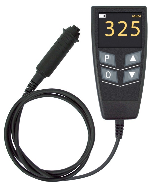 Малогабаритный прибор с встроенным или выносным совмещенным преобразователем для оперативной толщинометрии лакокрасочных, гальванических, порошковых битумных и других покрытий на изделиях из ферро- и неферромагнитных материалов в расширенном температурном диапазоне.