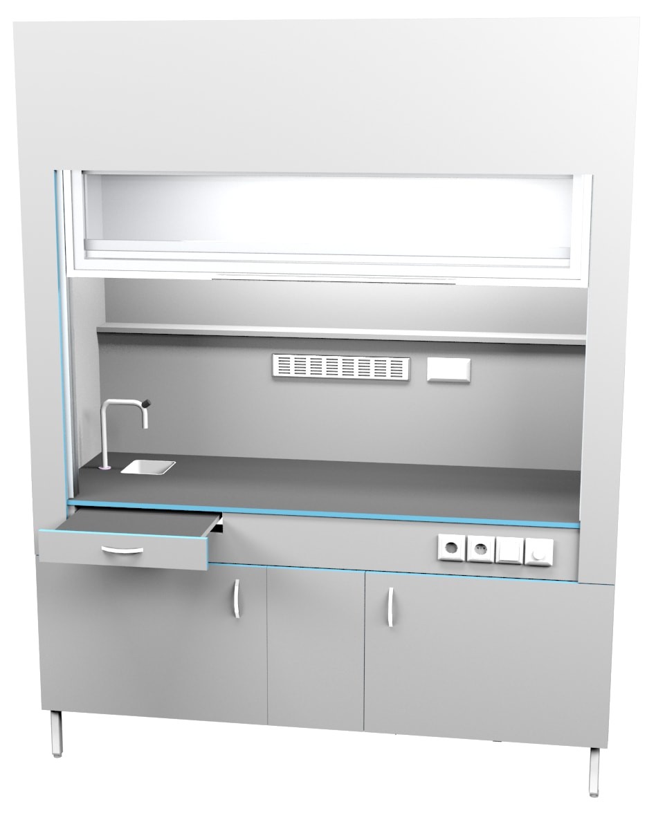 Шкаф вытяжной с сантехникой ШВ НВК 1800 НЕРЖ+ (1800×716×2200). Описание: Вытяжные лабораторные шкафы применяются при работе с токсичными и вредными летучими материалами, с чистыми материалами, с растворением или разложением под температурной обработкой, при проведении анализа проб и многих других. Особенности: Полипропиленовая раковина, обладающая высокой химической стойкостью Химически стойкий кран из латуни с полипропиленовым напылением для подключения холодной воды Дополнительная подсветка сбоку с плавной регулировкой Выдвижной столик Вытяжка из нижней тумбы позволяет хранить в ней реактивы Ударопрочный подъемный кран легко поднимается одной рукой Экран в поднятом состоянии не увеличивает высоту шкафа Внутри рабочей камеры полочка для хранения реактивов Две влагозащищенных розетки с крышкой внутри рабочей камеры Специальные доводчики в тумбе позволяют закрывать тумбу бесшумно По заказу столешницы могут быть выполнены из: химстойкого пластика керамогранита (плитка) полипропилена нержавеющей стали монолитной керамики эпоксидного керамзита