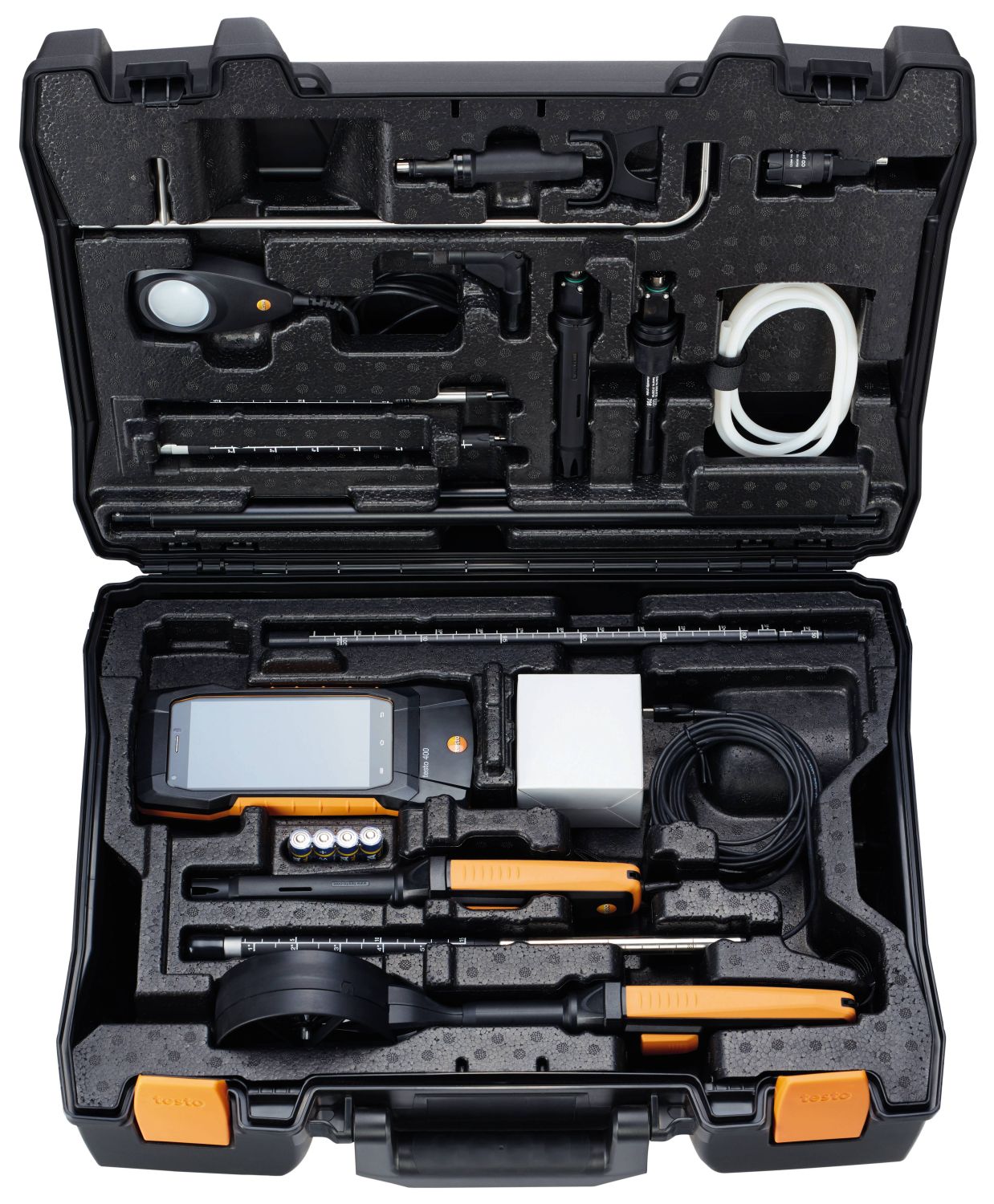 Ваши приборы для измерения скорости воздуха будут храниться в безопасности в этом прочном кейсе: в нем есть специальные отделения для хранения измерительного прибора (напр., testo 400), принадлежностей и зондов.