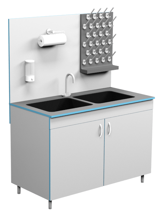 Стол мойка МО НВК 1200 ПП (1200*600*1650) Стол-мойка обладает всеми необходимыми характеристиками для продуктивной и безопасной работы: держатель для бумажных полотенец дозатор для жидкого мыла химически стойкий кран из латуни с полипропиленовым напылением химически стойкая полипропиленовая сушилка аварийный душ для промывки глаз (опция) навесное ведро (опция)