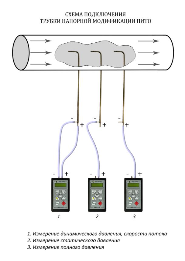 Концы трубок напорных соединяются с дифференциальным манометром шлангами (силиконовыми, ПВХ, резиновыми)необходимой длины (приобретаются дополнительно). Трубка напорная устанавливается в отверстие в стенке воздуховода на прямом участке.