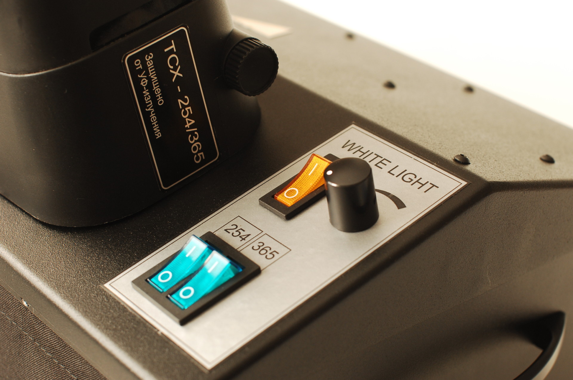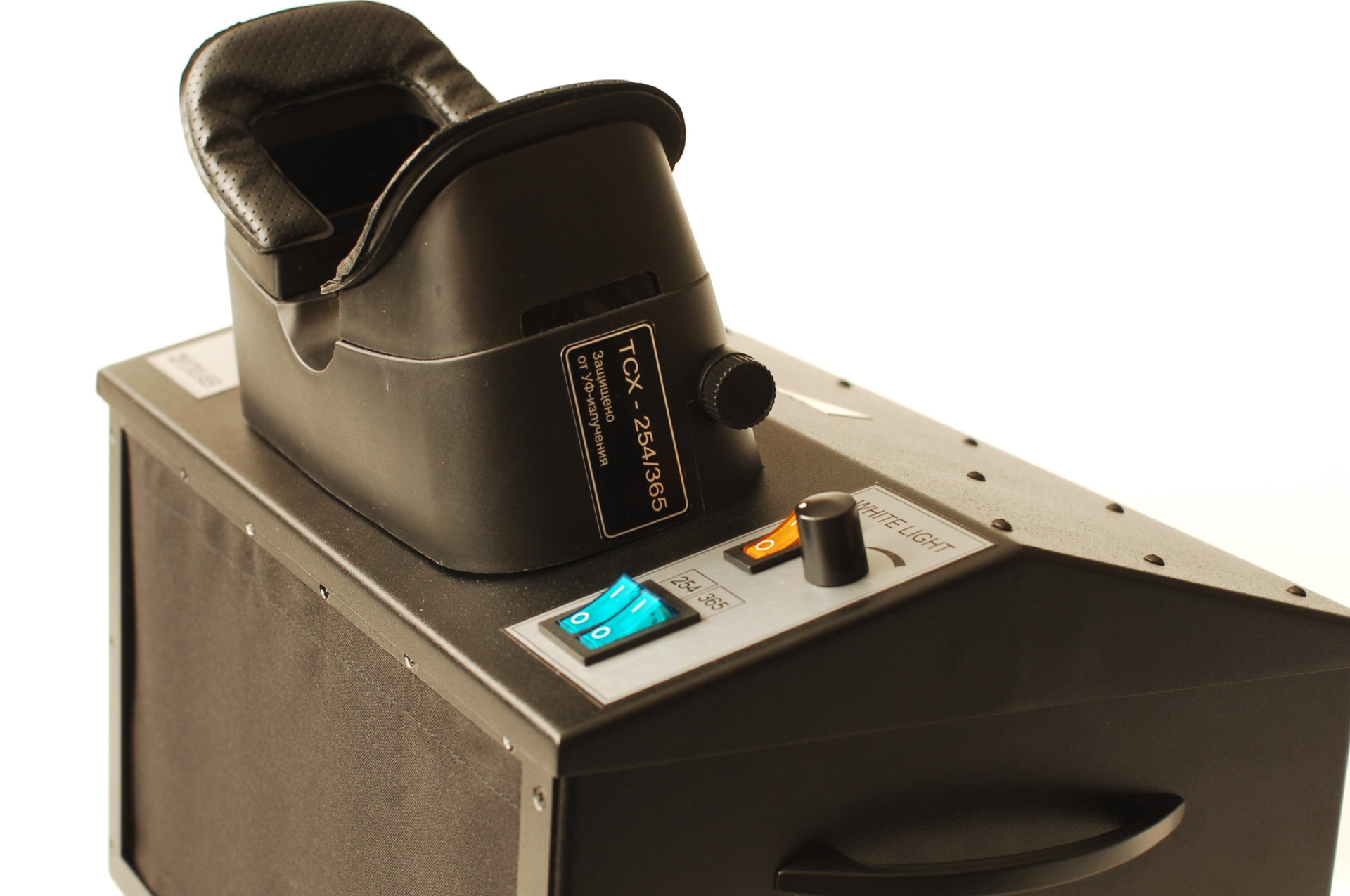 Несколько мощных УФ светодиодов для равномерной засветки. Гомогенизатор светового потока. Защитный фильтр для глаз . Отсутствие паразитного освещения в видимом диапазоне для обеспечения высокой контрастности и обнаружительной способности.  Наличие подсветки видимым белым светом с регулируемой яркостью. Возможен заказ этого прибора с фото- и видео- фиксацией на камеру, для хранения , печати, и последующей обработки полученного изображения ( тип ТСХ 254\365 -HD).
