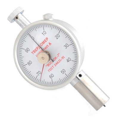 ТВР-А твердомер (дюрометр) Шора тип А с аналоговым индикатором предназначен для измерения твёрдости по шкале Шора тип А резины в соответствии с ГОСТ 263-75 и мягких пластмасс в соответствии с ГОСТ 24621-2015 (ISO 868-2003), в т.ч. мягких полиуретанов: эластомера, ПВХ, силикона, продуктов из натурального каучука, неопрена, смолы, полиэстера, кожи, полиграфических валков и т.п.
