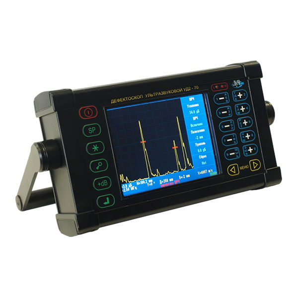 Ультразвуковой дефектоскоп УД2-70 предназначен для контроля продукции на наличие дефектов типа нарушения сплошности и однородности материалов, полуфабрикатов, готовых изделий и сварных соединений, для измерения глубины и координат их залегания, измерения отношений амплитуд сигналов от дефектов. Также имеются специальные меню, которые применяются для выявления дефектов в деталях и узлах локомотивов и МВПС и в деталях элементов колесных пар вагонов, в которых записаны типовые настройки прибора.