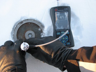 Твердомер позволяет проводить измерения твердости при экстремально низких значения температуры окружающего воздуха. Были проведены натурные испытания твердомера в реальных условиях при температуре окружающего воздуха минус 25 градусов Цельсия. Прибор показал себя очень хорошо — погрешность измерения не превысила паспортную, клавиатура и дисплей прибора позволили уверенно работать — разницы между работой при комнатной температуре и таком сильном холоде не было заметно вообще!