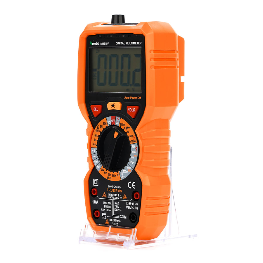 Мультиметр VERDO MH6107– это ручной цифровой мультиметр с функцией отображения истинного среднеквадратичного значения (TrueRMS) и большим жидкокри-сталлическим дисплеем с подсветкой и фонарем, что облегчает считывание показаний. Мультиметр оснащен функцией защиты от перегрузки и индикатором разряженной батареи. Этот многофункциональный измерительный прибор идеально подходит как для профессионального использования на производстве, ремонта и сервисного обслуживания, так и для обучения и бытового применения.